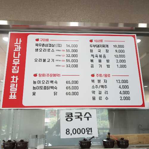 사과나무 집 전체 메뉴 안내